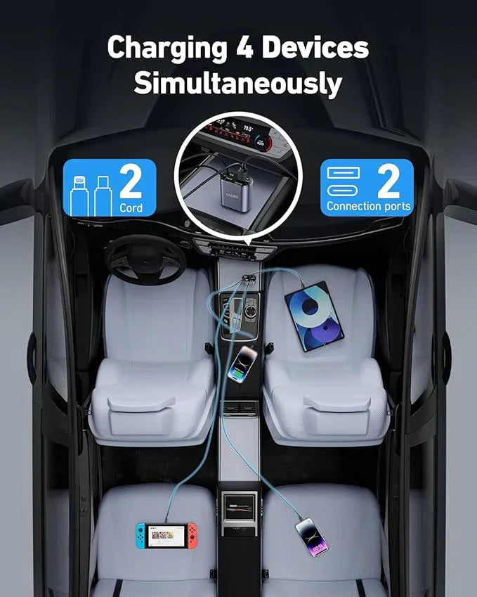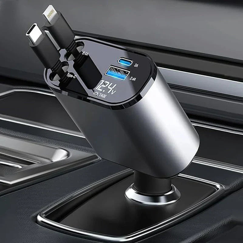 SMARTUNO™ 4 in 1 Retractable cables 2 Type C and iOS Fast Charging Car Phone Charger