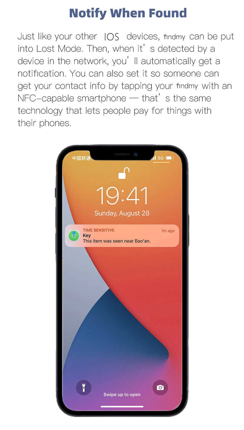 Feature GPS Navigation, for Airtags Positioning Mode Apple Find My Items Working distance 10-20M Standby time Standby time Buzzer Max 90DB