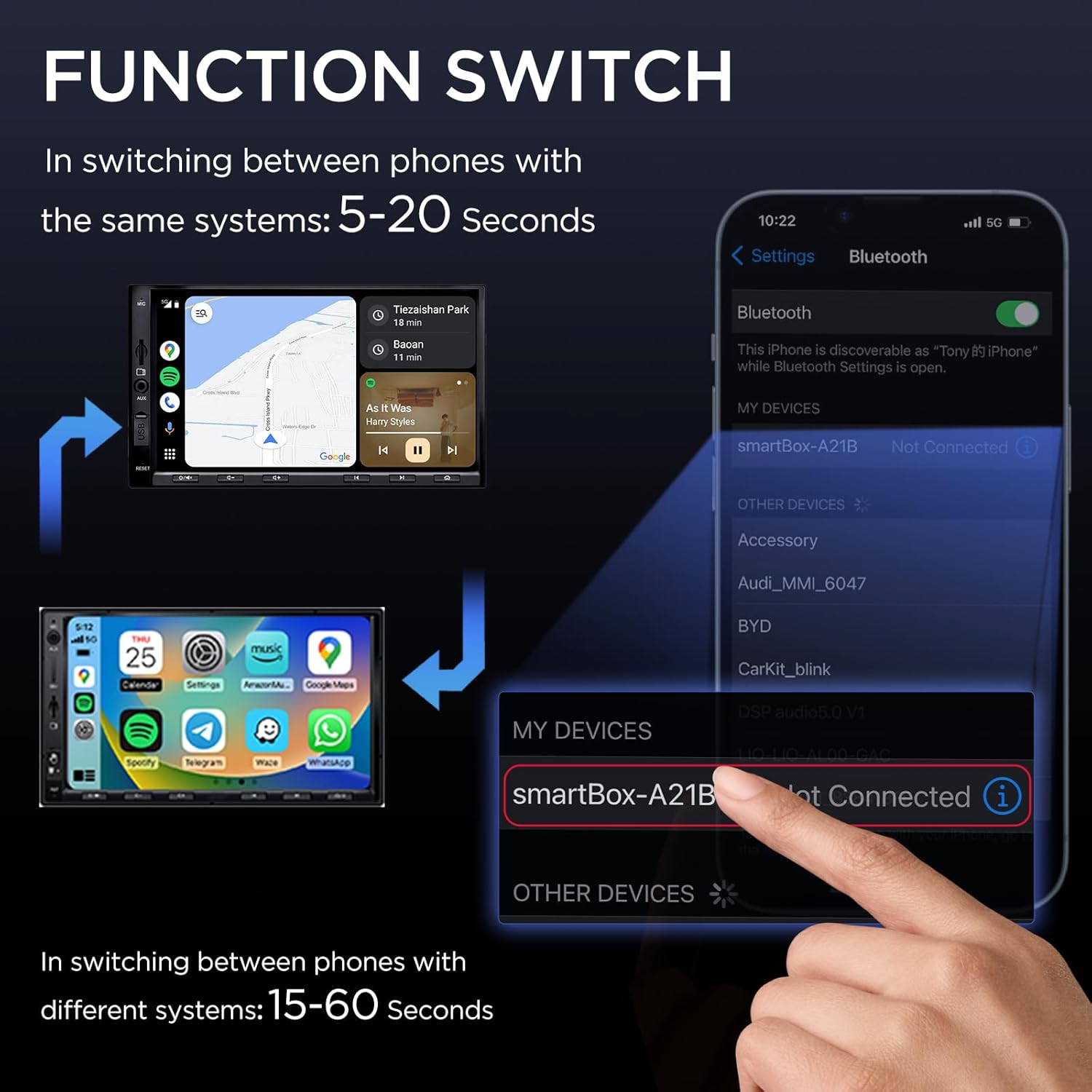 Transform your wired Android Auto or CarPlay into a wireless setup with ease. Just connect Bluetooth and WiFi once, and the adapter will auto-connect every time you start your car—even with your phone in your pocket or on a call.